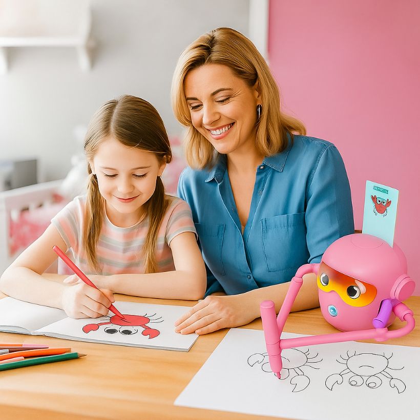 Ja! ArtieBot er helt skjermfri. Barnet setter inn et tegnekort, og roboten tegner automatisk steg for steg. Ingen apper, ingen Bluetooth – bare kreativ lek som holder fokus og fantasi i gang.